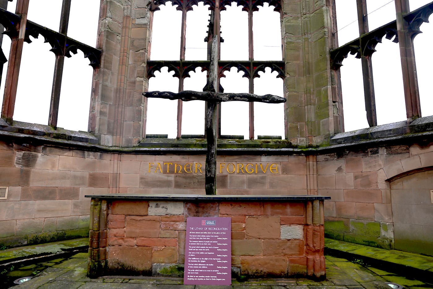 The ruins were left as is and a new cathedral built almost abutting the ruined one. These buildings and that story are a potent sign to this day.A local vicar formed the medieval nails of the cathedral's roof into the shape of a cross and the Provost used it as a sign all around the world for peace and reconciliation.